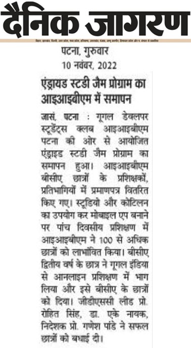 बीसीए छात्रों के प्रशिक्षकों, प्रतिभागियों में प्रमाणपत्र वितरित किए गए। स्टूडियो और कोटिलन का उपयोग कर मोबाइल एप बनाने पर पांच दिवसीय प्रशिक्षण में आइआइबीएम ने 100 से अधिक छात्रों को लाभांवित किया। बीसीए द्वितीय वर्ष के छात्र ने गूगल इंडिया से आनलाइन प्रशिक्षण में भाग लिया और इसे बीसीए के छात्रों को दिया। जीडीएससी लीड प्रो. रोहित सिंह, डा. एके नायक, निदेशक प्रो. गणेश पांडे ने सफल छात्रों को बधाई दी।